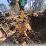 現在公園内の給水管を埋設工事するのに、配管ルートに杉の木がありその伐根作業に従事していて伐根がなかなか大変です。